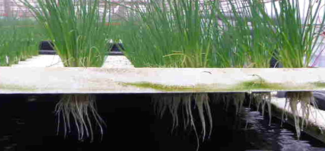 1973年にイギリスで開発された技術であり、緩やかな傾斜のついた栽培ベッドに、培養液を少量ずつ流下させながら、栽培するシステム。英語名は、nutrient film techniqueと言い、頭文字をとってNFT水耕といわれている。
