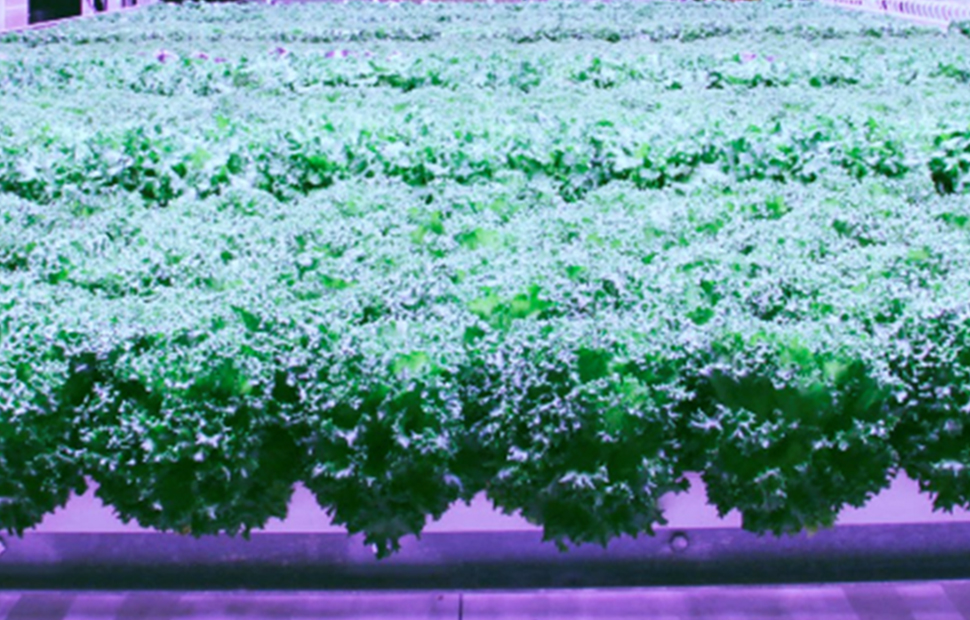 定植した苗が栽培室内を自動で循環しながら成長し、作業者が栽培室内に入らずに収穫まで行うことができるシステムとすることで、作業者の負担や異物の混入リスクを低減しました。